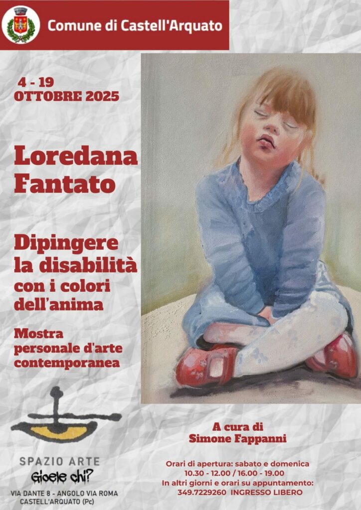 Loredana Fantato — mamma e membro della nostra associazione AGBD, conosciuta artisticamente come Loredana Lola — presenta a Castell’Arquato una mostra che celebra la bellezza e la profondità dei volti dei giovani con sindrome di Down.